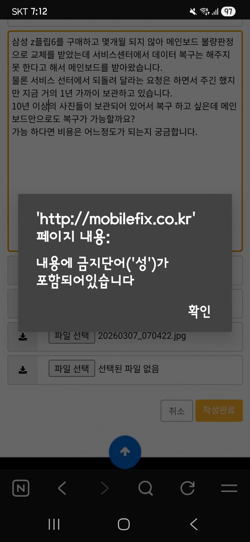 금칙어가 있다고 나오는데 첨부 스크린샷 질문을 봐 주시면 감사하겠습니다.